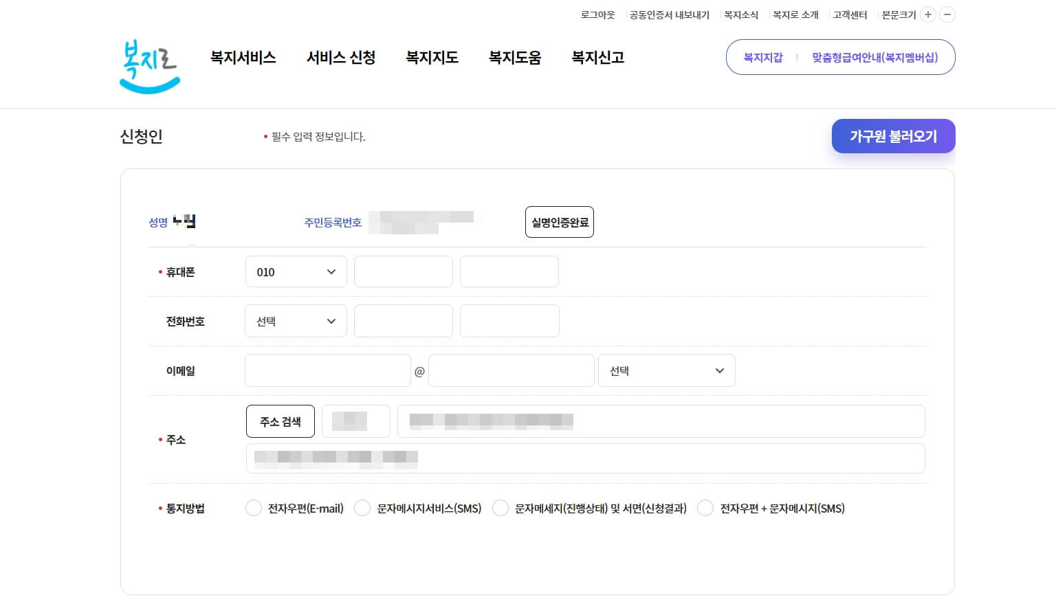 5-1. 보호자 본인의 정보를 신청인에 작성합니다.