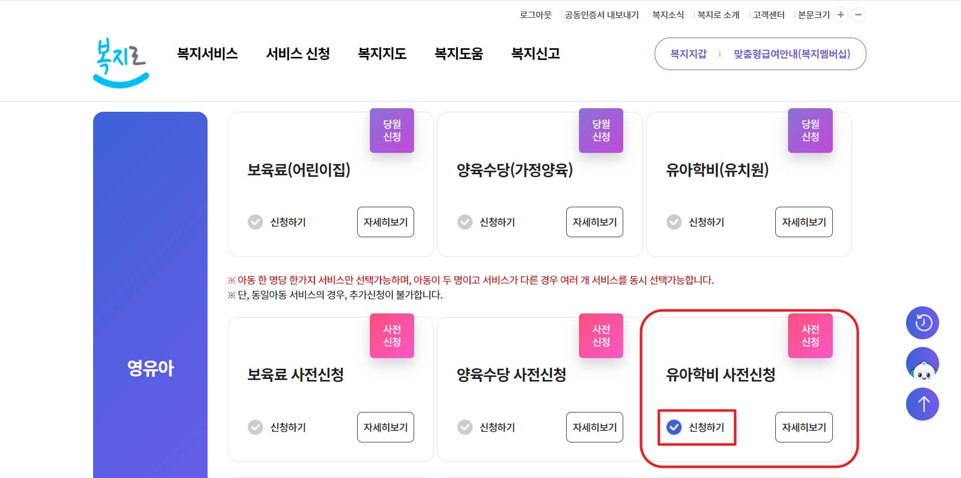 유아학비 사전신청이란?